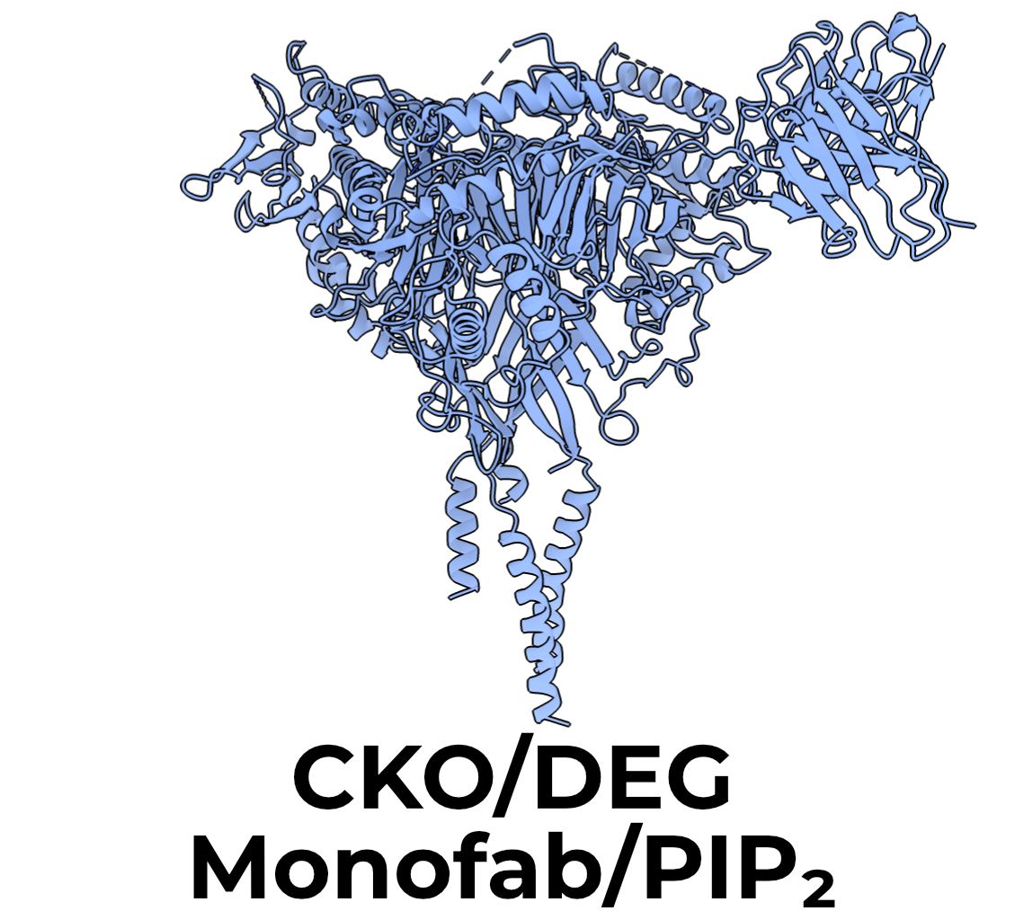 As discussed in Section 2.4.2.1, ENaC requires PIP2 to open. I thus added 1 mM C8 PIP2 to the CKO/DEG monofab samples just before grid preparation (Figure 3.3). I did not notice any difference in TMD quality or conformation compared with the CKO/DEG difab map (which did not have PIP2 added), and so did not add the lipid to any other preparations in this work.